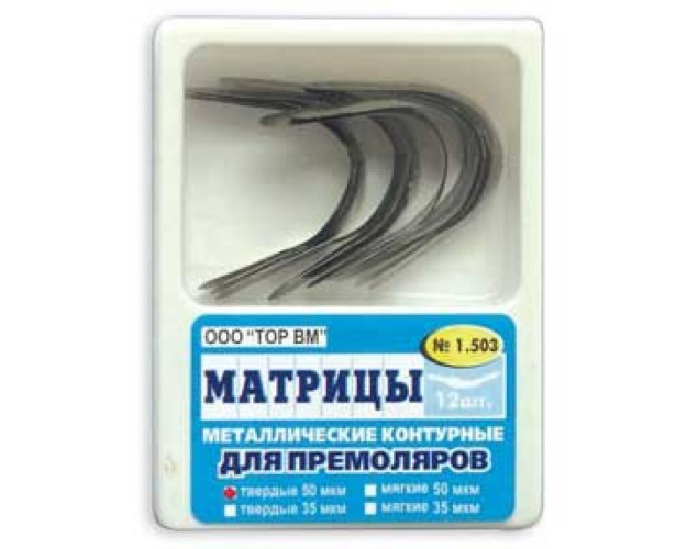 1.503 Матрицы металлические контурные, выступ слева, для премоляров (12шт), ТОР ВМ / Россия