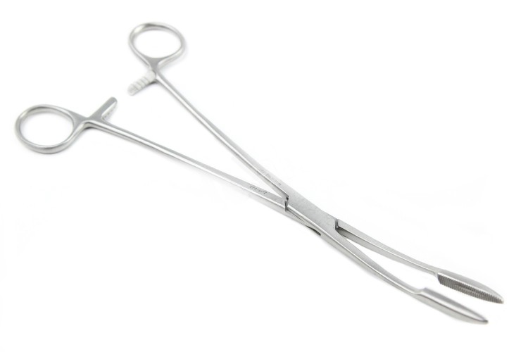 Изогнутый корнцанг J-18-048 пакистанской фирмы Surgicon предназначается для захвата и манипуляции при помощи стерильного материала. Могут использоваться при хирургических манипуляциях для прохождения к труднодоступным мягким тканям.
