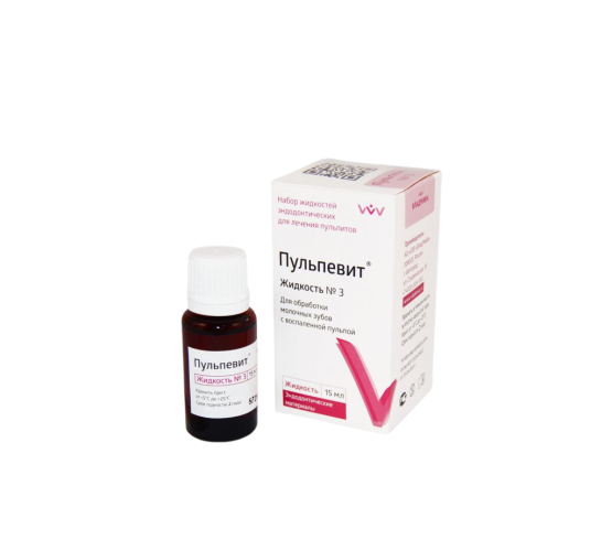 Пульпевит №3 - жидкость для лечения осложненного кариеса молочных зубов (15мл), ВладМива / Россия